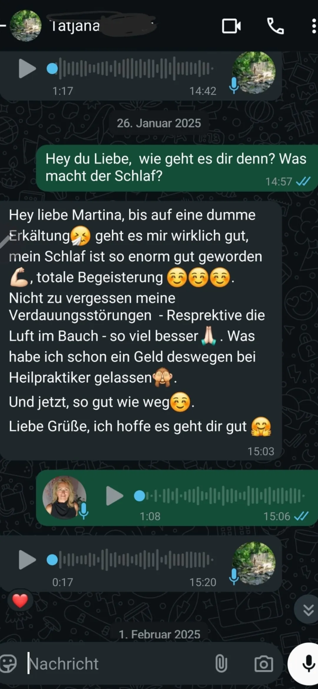 "Mein Schlaf ist enorm viel besser geworden und meine Verdauungsbeschwerden sind fast komplett weg. Ich habe wieder Energie und eine richtig gute Stimmung – endlich fühle ich mich wohl."