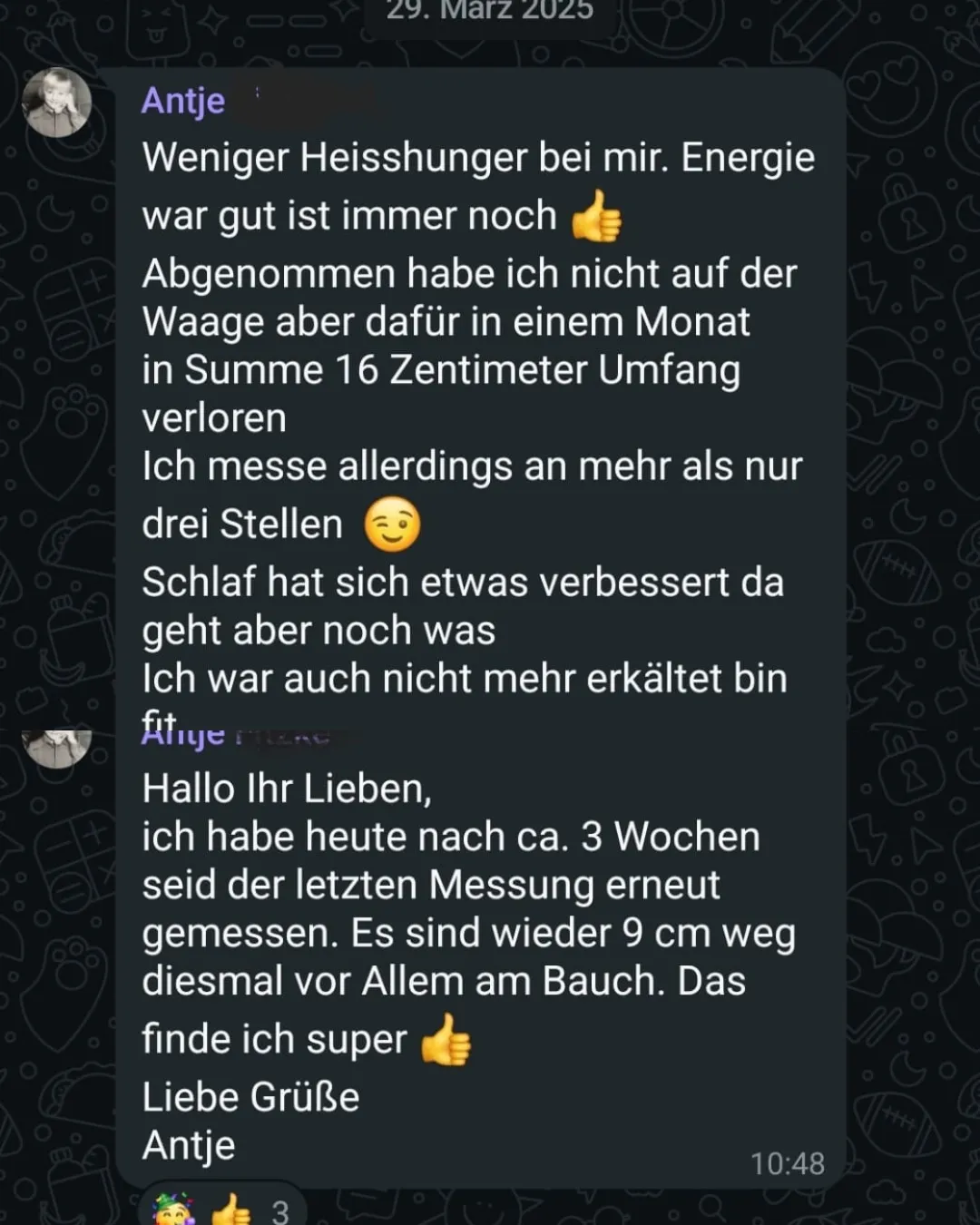 "„In nur einem Monat habe ich 16 cm Umfang verloren – und drei Wochen später nochmal 9 cm, vor allem am Bauch. Ich finde das super und fühle mich endlich wieder wohl.“"